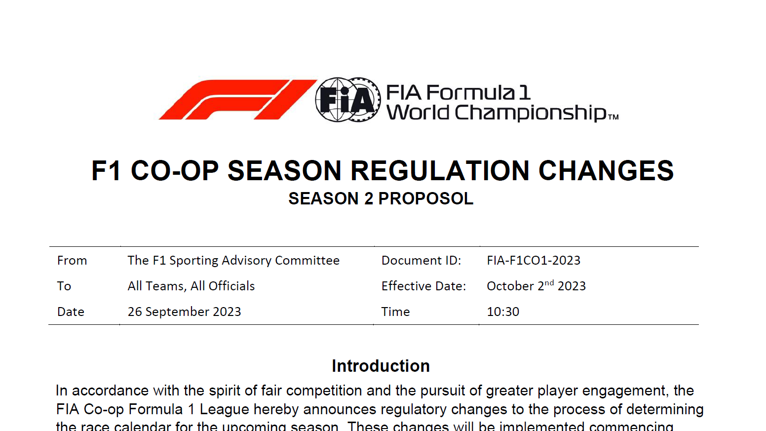 In a surprising twist that’s sent shockwaves through the Formula 1 Co-Op Season community, a leaked document has unveiled significant regulatory changes on the horizon. These forthcoming rules, known as “FIA F1CO1-2023,” are poised to revolutionize the structure of the Co-Op Season, with a novel approach that takes championship results from the current season into account. This innovative shift is aimed at making the competition more balanced and dynamic.