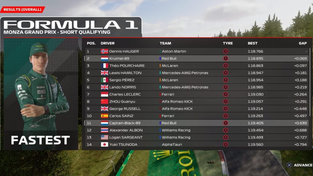 As the engines roared to life in the practice sessions, the battleground seemed to unfold predominantly between the dynamic duo of Red Bull and the resurgent McLaren team. Despite The Captain expressing satisfaction with his lightning-quick laps, the timing sheets revealed a surprising twist – he found himself in 10th place at the end of the session. In stark contrast, Kruimel, the enigmatic newcomer at Red Bull, once again etched his name atop the time charts, clocking the fastest time of the session.