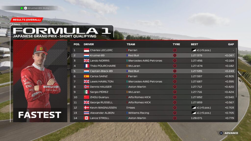 As the lights went out on the sunny Suzuka Circuit, Kruimel showcased a stellar start, fending off challenges from competitors and maintaining his lead. The Captain, starting from fourth, faced an early setback, conceding a position to Leclerc in the opening laps.