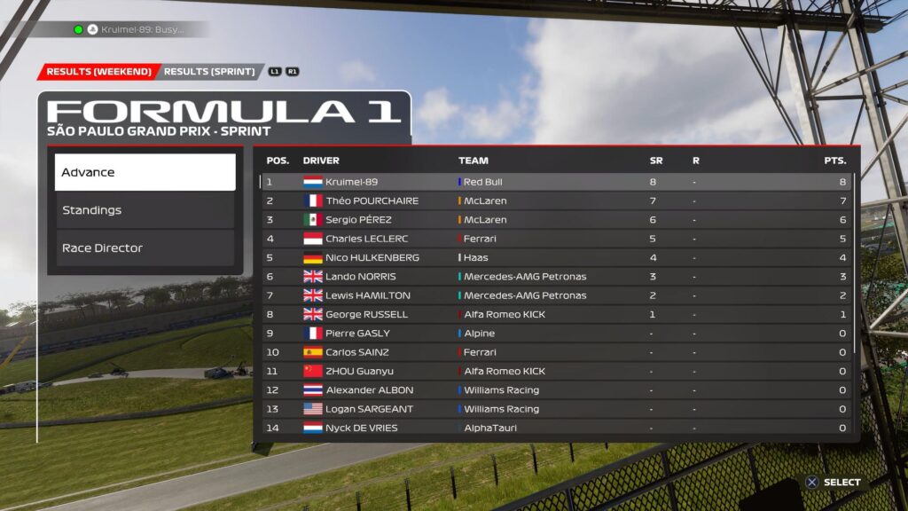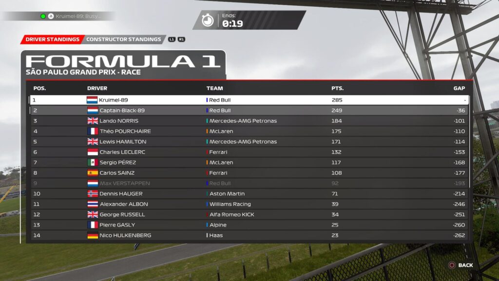 Amidst the sun-soaked ambiance of the Brazilian Grand Prix, the motorsport world witnessed a riveting climax to F1 Co-Op Season 2. Taking center stage at the iconic Brazil circuit for the 16th and final race, the showdown for the championship unfolded with tantalizing intensity. Red Bull teammates Kruimel and The Captain found themselves in a nail-biting duel, separated by a mere 2 points in the championship standings. The stakes were higher than ever in this sprint weekend, with additional points up for grabs in the Saturday sprint race.
