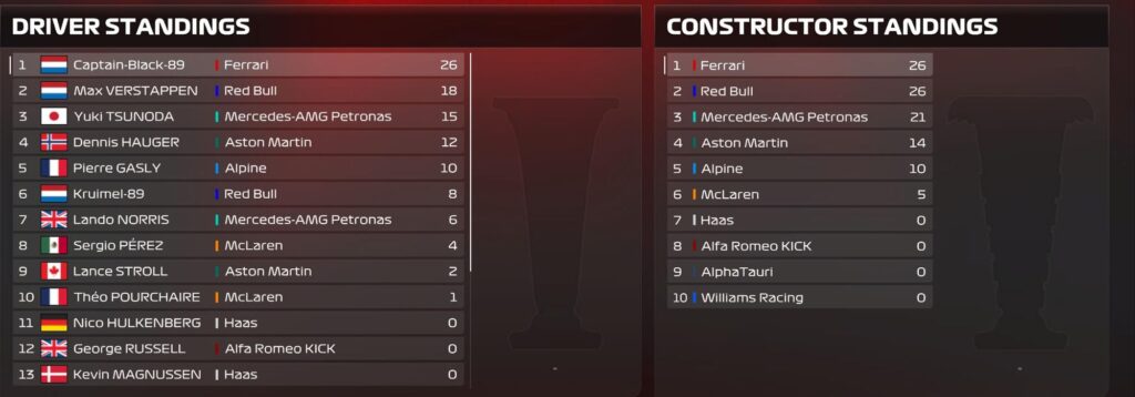 This triumph catapults The Captain to the top of the championship standings, with Ferrari and Red Bull sharing equal points in the constructors’ battle. As the F1 Co-Op Season 3 unfolds, the next race at the Jeddah street circuit promises more excitement, building on the intense rivalry and unexpected turns witnessed in Bahrain.