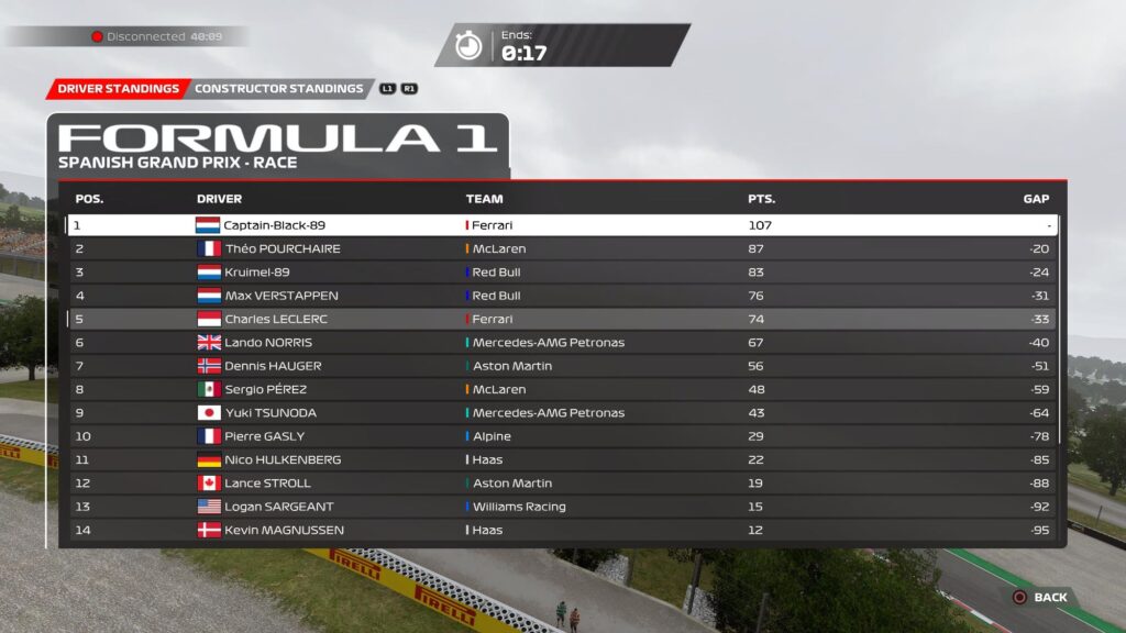 With victory at Barcelona, The Captain solidified his grip on the championship, extending his lead over the competition. Meanwhile, Kruimel’s valiant performance elevated him to third in the standings, setting the stage for a tantalizing battle in the races to come.