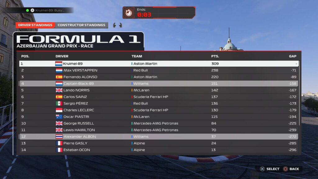 Kruimel’s once comfortable 89-point championship lead shrank to 71 points, while The Captain clung to P4 in the standings. Williams left Azerbaijan without points, but they still hold fourth in the Constructors’ Championship, ahead of Mercedes.