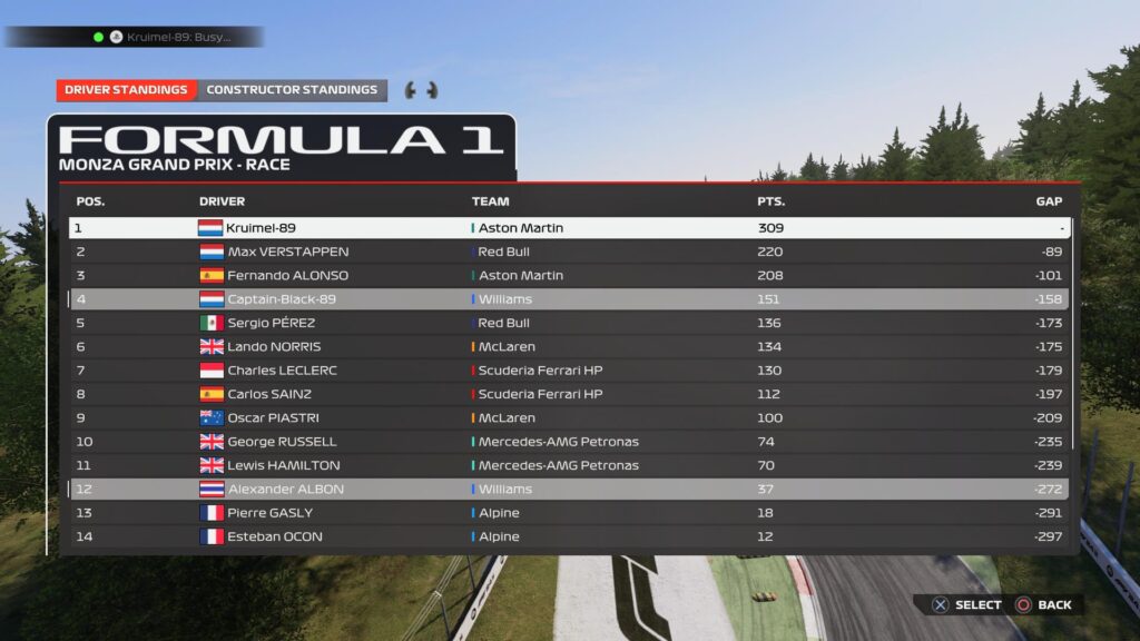 For Kruimel and The Captain, the Italian Grand Prix was another showcase of their immense talent. As the season heads into its final stretch, Kruimel appears unstoppable, but The Captain’s relentless fight from the back continues to capture the imagination of fans worldwide.