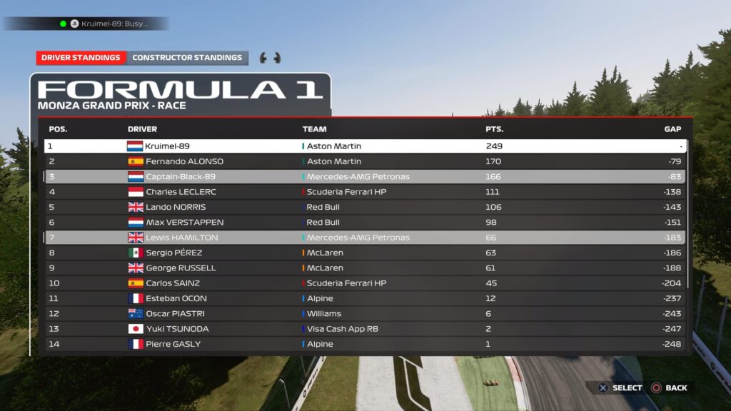 The Italian Grand Prix at Monza, known as the Temple of Speed, delivered another exciting chapter in this year’s F1 Co-op season. Kruimel secured his ninth win of the season with a commanding performance, while The Captain’s second-place finish brought him within just four points of Alonso in the fight for second place in the drivers’ championship.