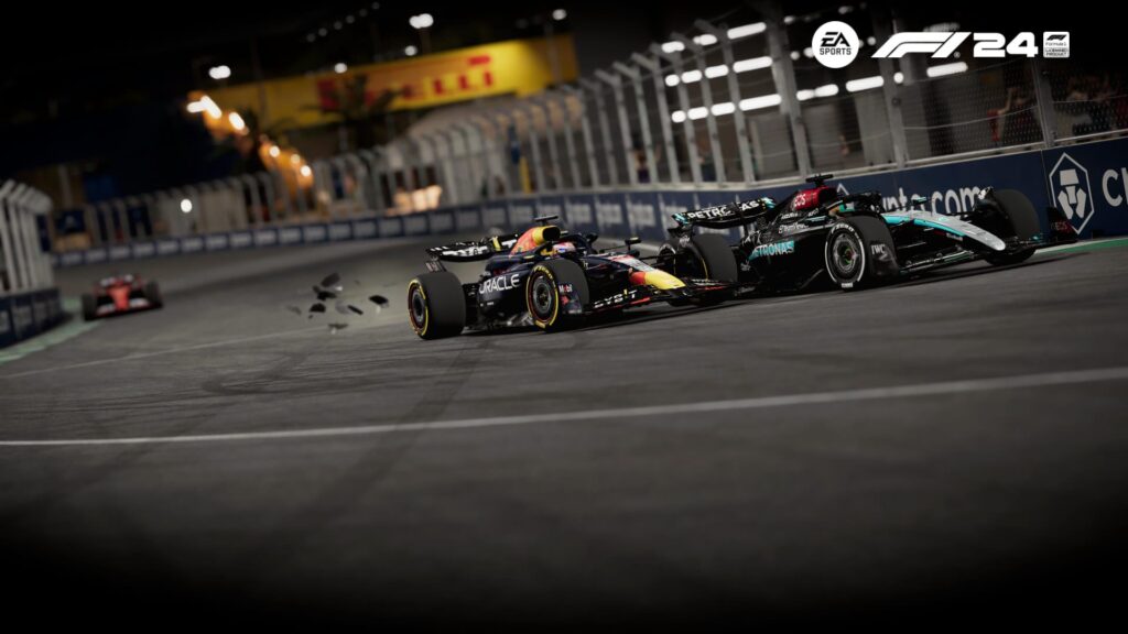 While Kruimel capitalized on The Captain’s misfortune to build a commanding lead, The Captain launched a spirited recovery drive. After rejoining at the back of the field, he steadily climbed the order, overtaking Charles Leclerc and Sergio Perez post-pit stops. A critical moment unfolded on Lap 13 as The Captain attempted to pass Max Verstappen in the high-speed Turn 22. Verstappen turned in aggressively, resulting in significant damage to his front wing and minor but impactful floor damage to The Captain’s car. The Captain managed to secure P4 but struggled with reduced pace thereafter.