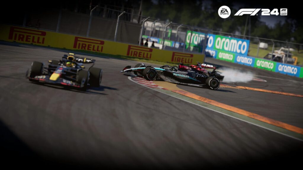 Despite his misfortune, The Captain launched an impressive recovery drive. He quickly dispatched Verstappen and Ocon before setting his sights on Charles Leclerc for P6. However, in Lap 17, an attempted overtake at the chicane turned disastrous when Leclerc unexpectedly moved right, resulting in significant front wing damage for The Captain.