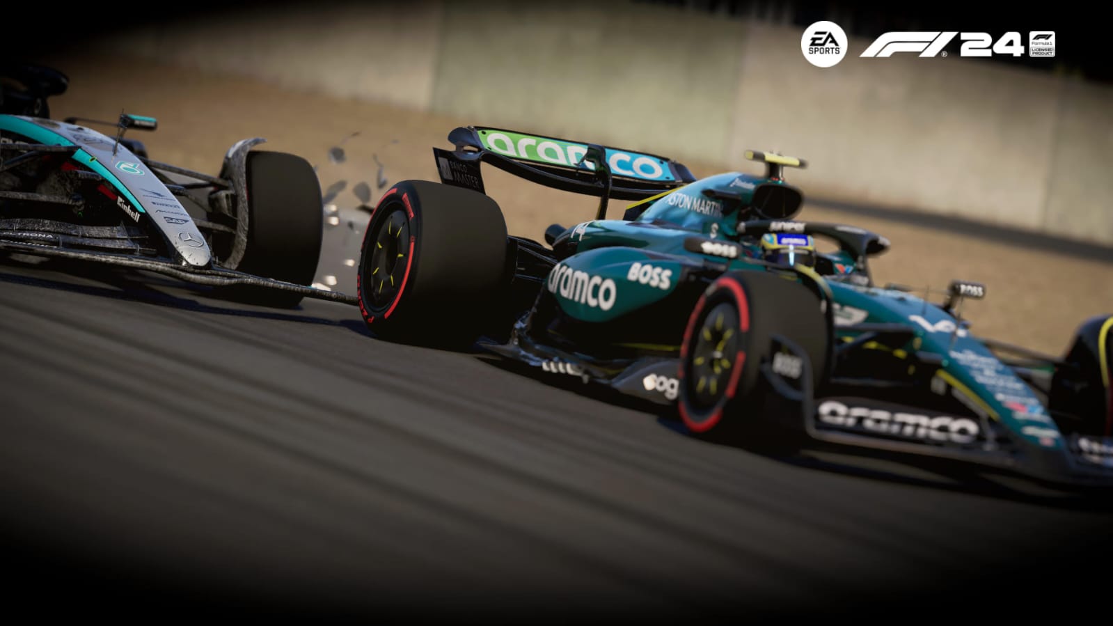 The Captain continued his defensive masterclass against Alonso, allowing Russell to join the fight in Lap 8. Exiting Turn 14, The Captain had no DRS, and both Alonso and Russell flanked him—Alonso on the left, Russell on the right. As they approached Turn 15, Alonso turned in without checking, clipping The Captain’s wing. The impact sent The Captain into Russell, causing additional damage to his front wing and floor.