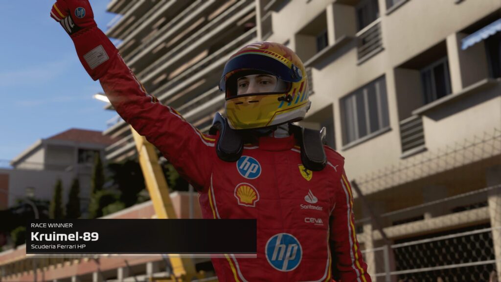 From that point on, the race settled into a rhythm. The field remained largely static, with no major battles materializing at the front. After 27 laps, Kruimel crossed the line to secure yet another Monaco victory. The Captain followed 19 seconds later, while Alonso completed the podium a further five seconds adrift.