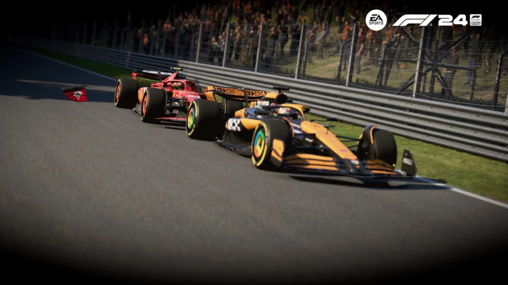 But the top four were compressing, and the cat-and-mouse game began. A lap later, Leclerc, Verstappen, and Perez all slipstreamed past The Captain, pushing him back to P4. Kruimel, meanwhile, had switched early to hards, gambling on strategy to claw back positions despite his wounded car.